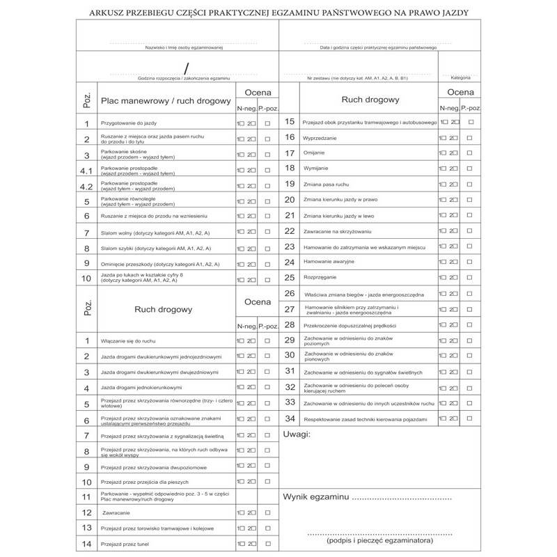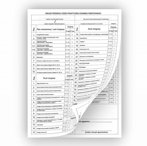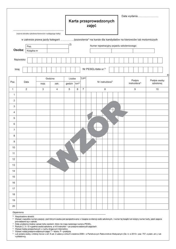 Druk zgodny z Rozporządzeniem Ministra Infrastruktury i Budownictwaz dnia 4 marca 2016r. w sprawie szkolenia osób ubiegających sie o uprawnienia do kierowania pojazdami, instruktorów i wykładowców.