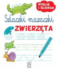 Szlaczki mazaczki. Zwierzęta oraz Szlaczki mazaczki. Zabawki to kolorowe książeczki, dzięki którym dzieci będą mogły nauczyć się trudnej sztuki rysowania szlaczków. Znajdujące się w książkach barwne ilustracje z pewnością umilą zabawę! W książeczce pisz specjalnym, ścieralnym mazakiem. Dzięki temu będziesz mógł wielokrotnie ją wykorzystać. Kiedy się pomylisz albo będziesz chciał wykonać ćwiczenie jeszcze raz, zetrzyj szlaczek chusteczką lub gąbką.