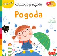 Książeczka Pogoda z serii Zabawa i Przygoda przedstawia krótką historyjkę o małej dziewczynce, która lubi bawić się ze swoim kotkiem na dworze. Każda rozkładówka pokazuje inną formę aktywności oraz inne zjawiska pogodowe. Dzięki czemu mały czytelnik poznaje różne zjawiska pogodowe. Książeczka zawiera elementy POP-UP, które dodatkowo pobudzają wyobraźnię i zachęcają do wspólnego czytania.