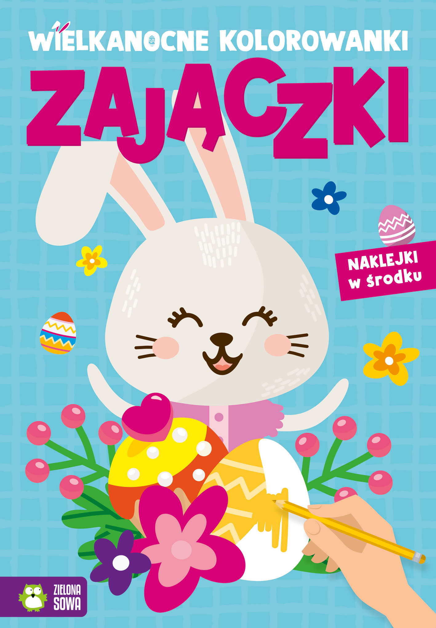 Pisanki i wielkanocne koszyki, zajączki i kurczątka –to idealne kolorowanki dla wszystkich, którzy już nie mogą doczekać się Wielkanocy i wiosny„Wielkanocne kolorowanki”to seria o tematyce wiosenno-wielkanocnej. Doskonale sprawdzi się w czasie oczekiwania na Wielkanoc, gdy po długiej zimie świat zacznie budzić się do życia. Dziecko będzie miało mnóstwo zabawy z kolorowania, a przy tym w ten prosty sposób zapozna się z najpopularniejszymi tradycjami i zwyczajami wielkanocnymi.A gdy pokolorujecie już wszystkie pisanki, palmy i koszyczki ze święconką, w każdej książeczce szukajcie naklejek, które pomogą Wam ozdobić Wasze obrazki.
