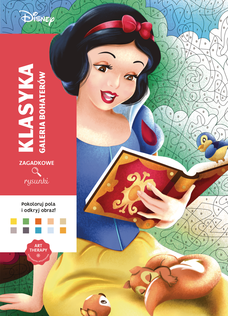 W czyje portrety zmienią się czarno-białe obrazki? Czy będą to podobizny odważnych i ciekawych świata bohaterek - Mulan albo Roszpunki - a może króla Trytona lub Kubusia Puchatka, najsympatyczniejszego misia wszech czasów? Dobierz odpowiednie kolory i wypełniaj nimi pole po polu, a ujrzysz sto kadrów ze znanych i lubianych filmów Disneya i Pixara.