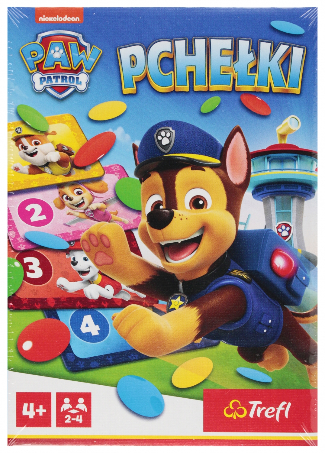 Pchełki to klasyczna gra zręcznościowa w bajkowym wydaniu, która z pewnością spodoba się małym fanom bajki Psi Patrol! Podczas rozgrywki gracze starają się trafić pchełkami do żetonów celów. Sprawdźcie, kto wskoczy na najcenniejsze żetony i wygra pojedynek! Zawartość: 4 żetony pchełek, 20 małych żetonów pchełek, 4 żetony celów 2-4 graczy Wiek: 4+