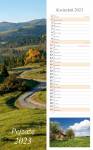 Kalendarz wieloplanszowy, ścienny, typu: pasek szeroki, 12 kart plus okładka pokryta lakierem UV, miesiąc na stronie.Spięty spiralą wraz z drucianą zawieszka, format 15x48 cm.Kalendarz charakteryzuje się umiejętnym połączeniem estetyki kalendarium wr...