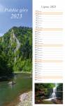 Kalendarz ścienny, wieloplanszowy, zawierający dwanaście kart (miesiąc na stronie) plus okładka pokryta lakierem UV, spięte spiralą zamykaną, wraz z drucianą zawieszką.Parametry techniczne:wysokość 48 cmszerokość 15 cmśrodki: papier kreda biała błysk...